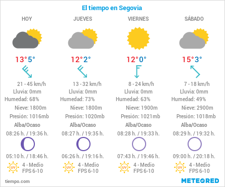 * Los Datos del tiempo de Segovia han sido elaborados con información obtenida de la Agencia Estatal de Meteorología (AEMET)