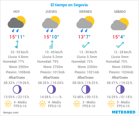 El Tiempo en Segovia – 21 de Octubre de 2020, para el día de hoy esta activada la alerta amarilla por vientos por la AEMET.