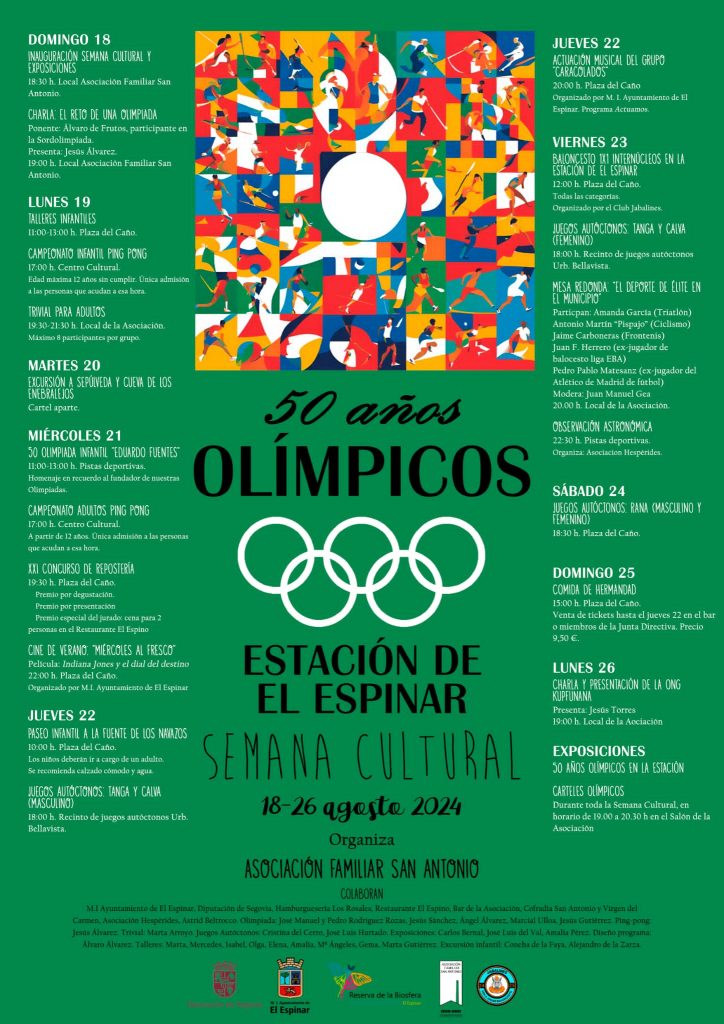 50 años Olímpicos en La Estación de El Espinar, del 18 al 26 de Agosto de 2024, con Talleres, Charla, Música, Baloncesto, Trivial, Campeonatos..