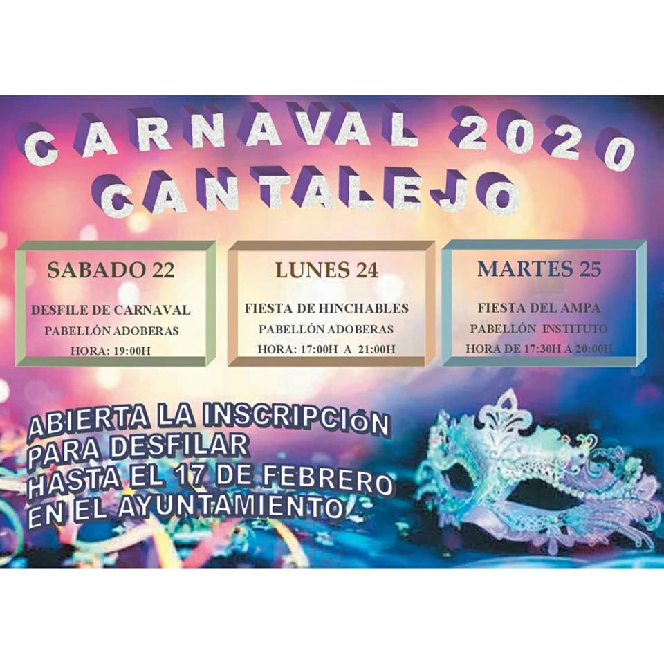 Carnaval 2020 en Cantalejo Los días 22, 24 y 25 de Febrero, se celebra en Cantalejo el Carnaval!! Con desfile, Fiesta de Hinchables y Fiesta del AMPA.