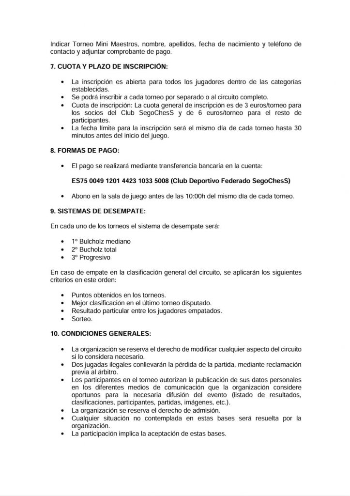 El «2º Circuito de Ajedrez Mini-Maestros» es una iniciativa excelente para fomentar el pensamiento estratégico y la competición sana entre los jóvenes. Organizado por el Club Deportivo Segochess, el torneo se juega bajo sistema suizo a 6 rondas, permitiendo que todos los participantes jueguen todas las partidas. Con trofeos para los ganadores y un ambiente de concentración y aprendizaje, es la cita obligada para los amantes del tablero en la provincia.