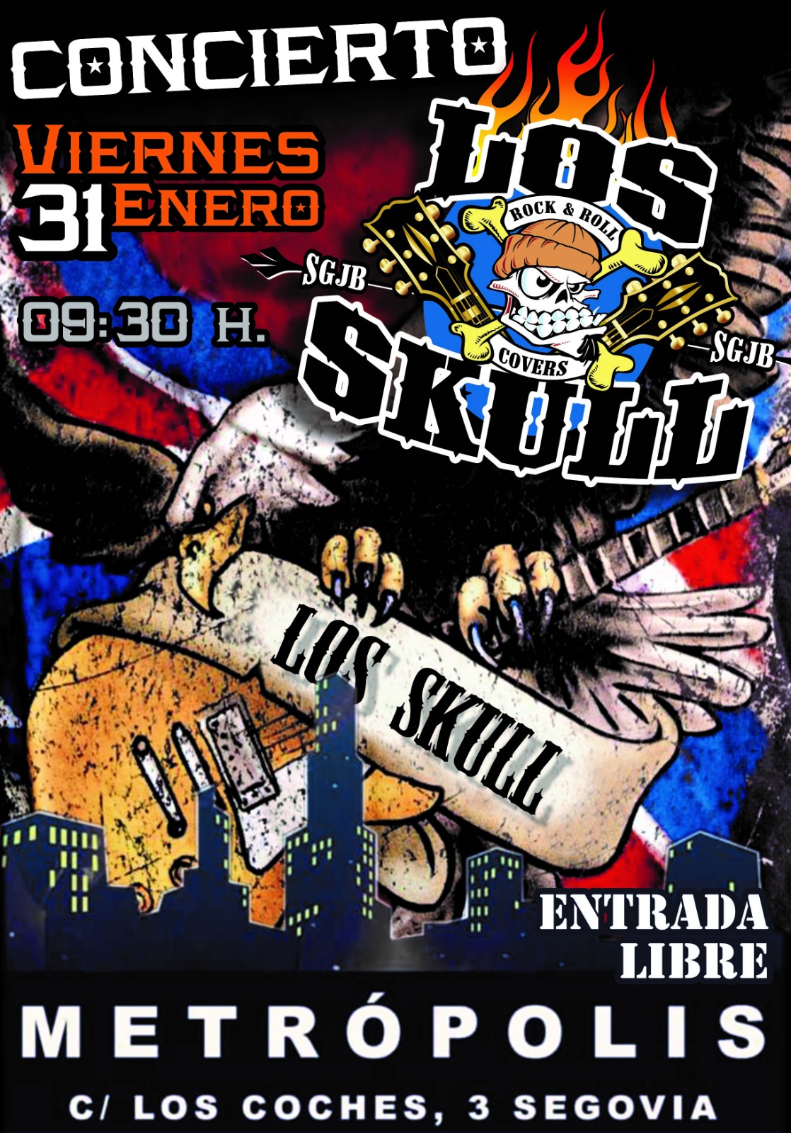 CONCIERTO DE LOS SKULL EN METRÓPOLIS El viernes 31 de Enero concierto de «Los Skulls», a las 21,30, en Metrópolis (SEGOVIA).