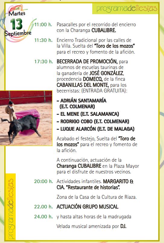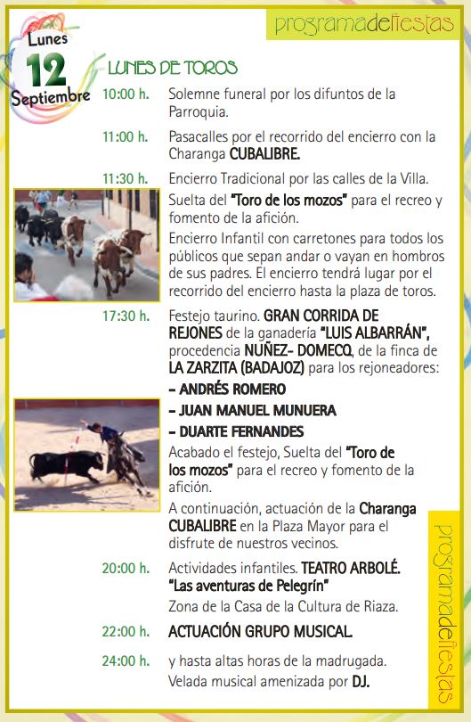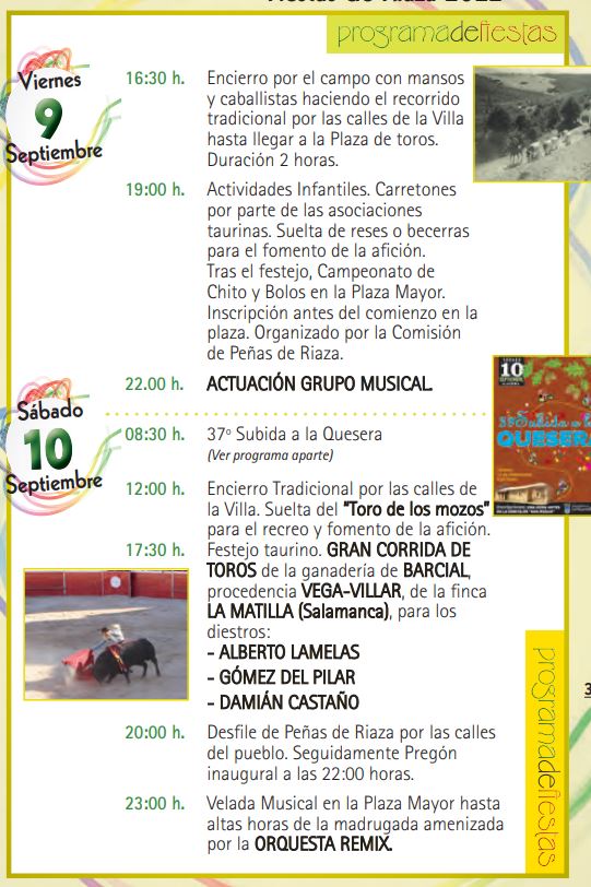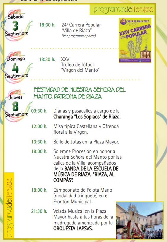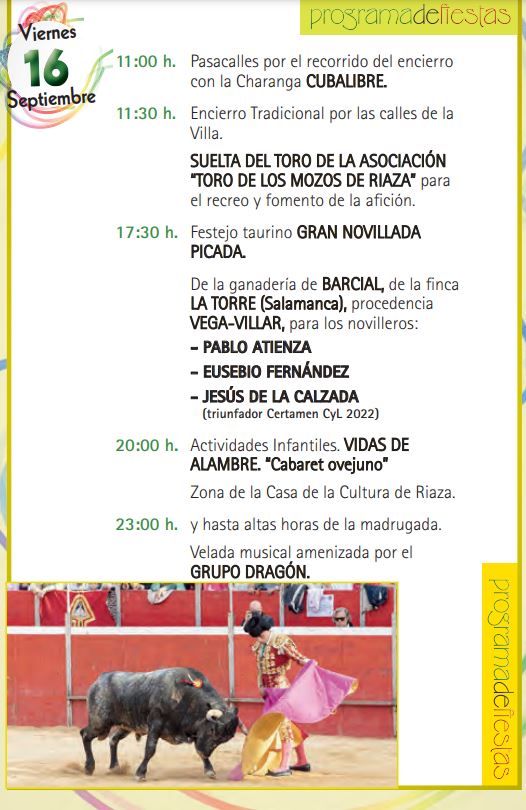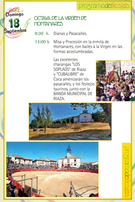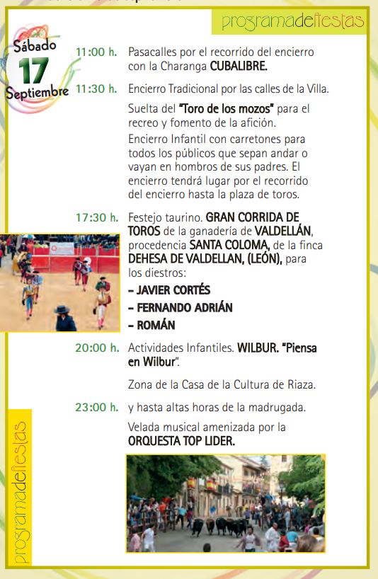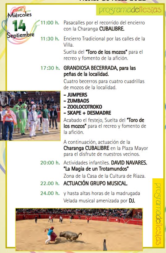 Fiestas 2022 en Riaza desde el 3 hasta el 18 de Septiembre de 2022, con Carreras, Trofeos, Campeonatos, Misas, Toros, Juegos Infantiles, Bailes, Verbenas, Encierros, Actividades Infantiles..