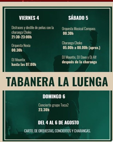 Fiestas 2023 en Tabanera La Luenga, los días 4, 5 y 6 de Agosto de 2023 con Disfraces, Orquesta, Charanga, Orquestas, DJ..