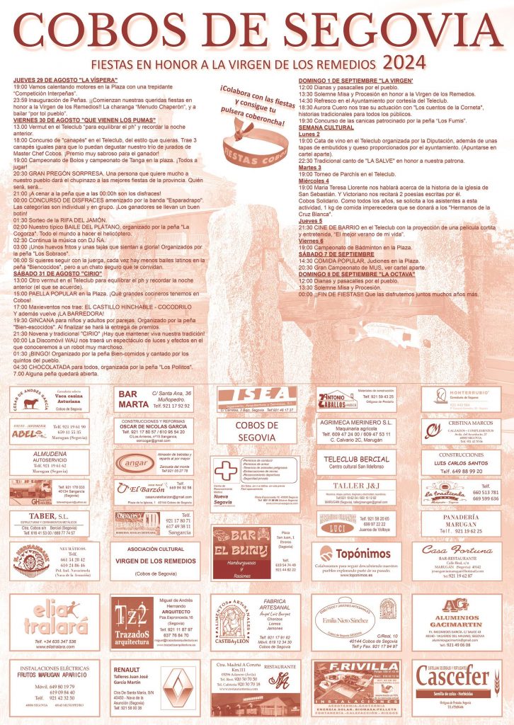 Fiestas 2024 en Cobos de Segovia, del 29 de Agosto al 8 de Septiembre de 2024, incluida la semana cultural… Síguenos