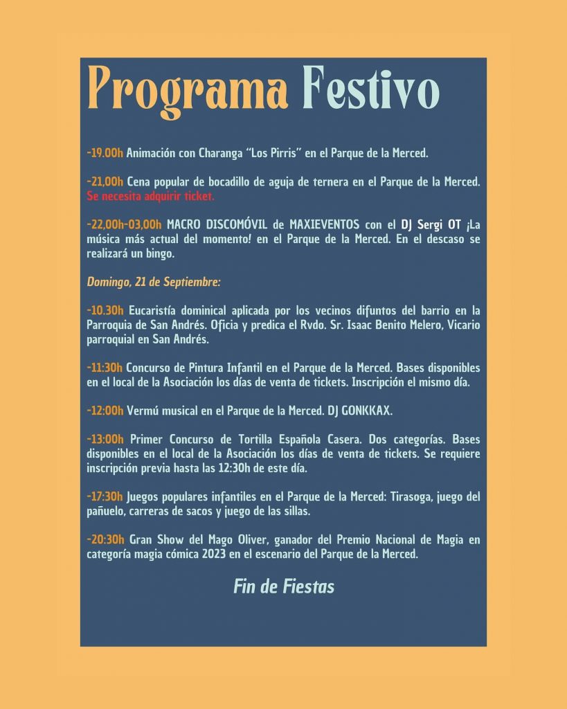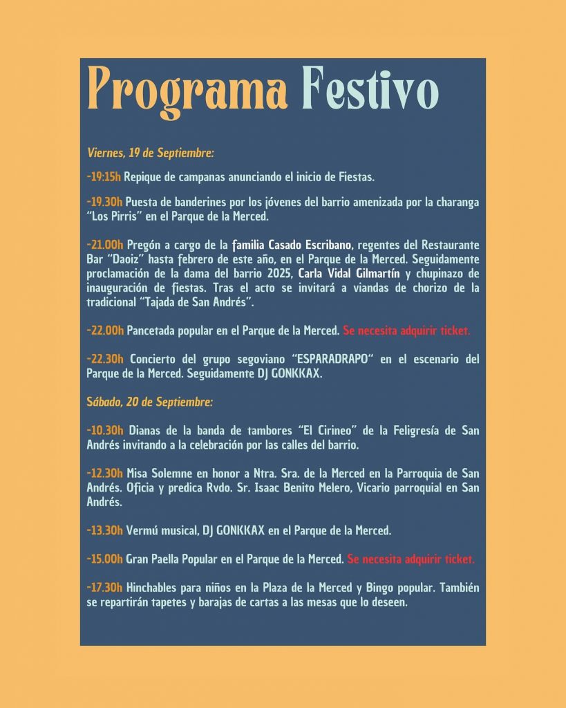 Fiestas de Nuestra Señora de la Merced 2025 en Segovia, Las Fiestas de Nuestra Señora de la Merced se llevarán a cabo en el Barrio de San Andrés del 19 al 21 de septiembre.