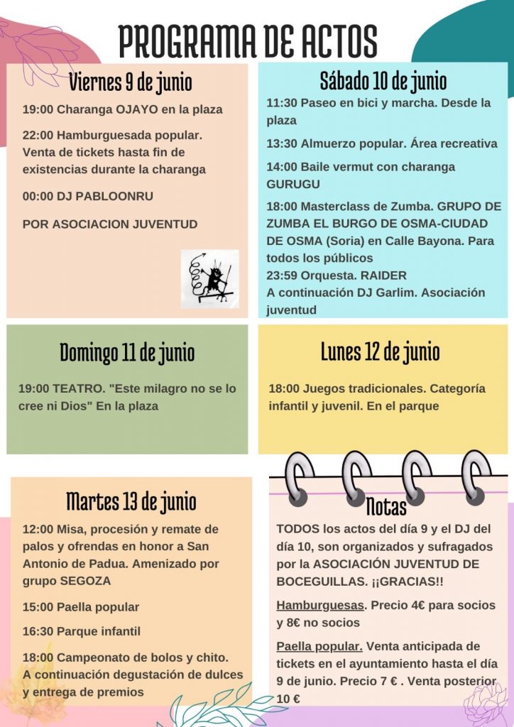 Fiestas de San Antonio 2023 en Boceguillas, fiestas en honor a su patrón, San Antonio de Padua, los próximos días 9, 10, 11, 12 y 13 de junio de 2023.
