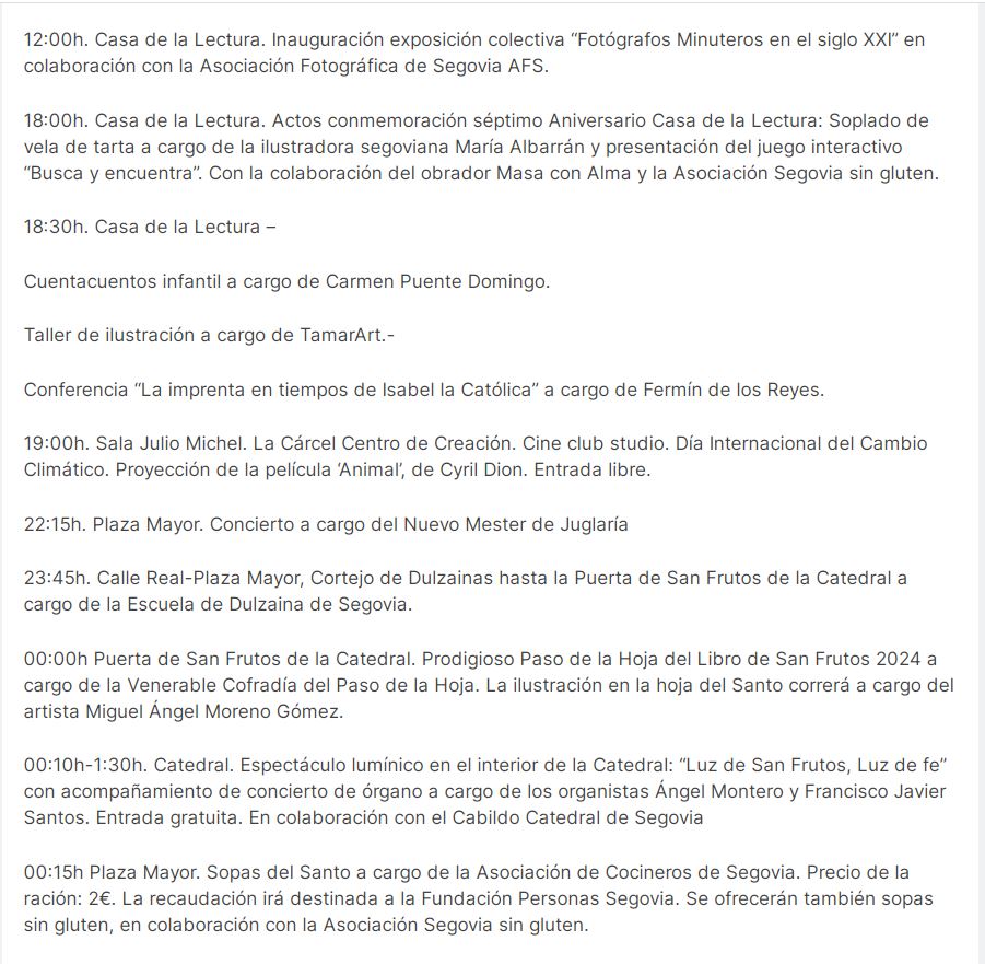 Fiestas de San Frutos 2024, 24 de octubre Síguenos