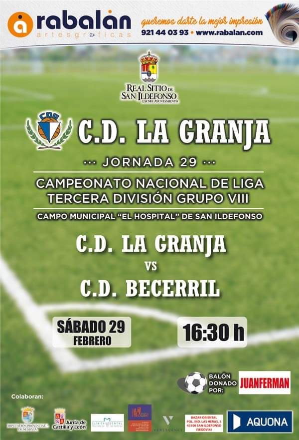 Fútbol – J29 Grupo VIII | CD La Granja – CD Becerril El Sábado, 29 de febrero de 2020 a las 16:30, en el Campo El Hospital de La Granja, Partido correspondiente