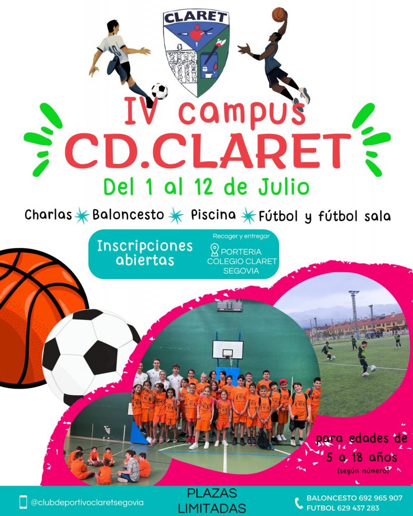 IV Campus CD Claret 2024, del 1 al 12 de Julio de 2024, con Charlas, Baloncesto, Piscina, Fútbol y Fútbol Sala. Para edades de 5 a 18 años.
