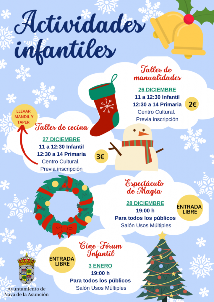 Navidades 2023 en Nava de la Asunción, desde el 17 de Diciembre hasta el 5 de Enero, con Belén Viviente, Milla de Navidad, Magia, Cine y Cabalgata de Reyes… también con actividades Infantiles!!!