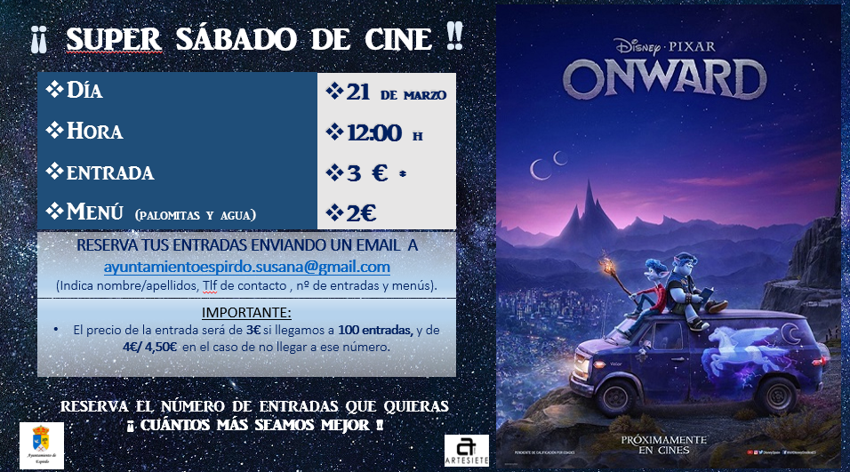 El 21 de Marzo a las 12:00, Onward en Super sábado de Cine en Espirdo.