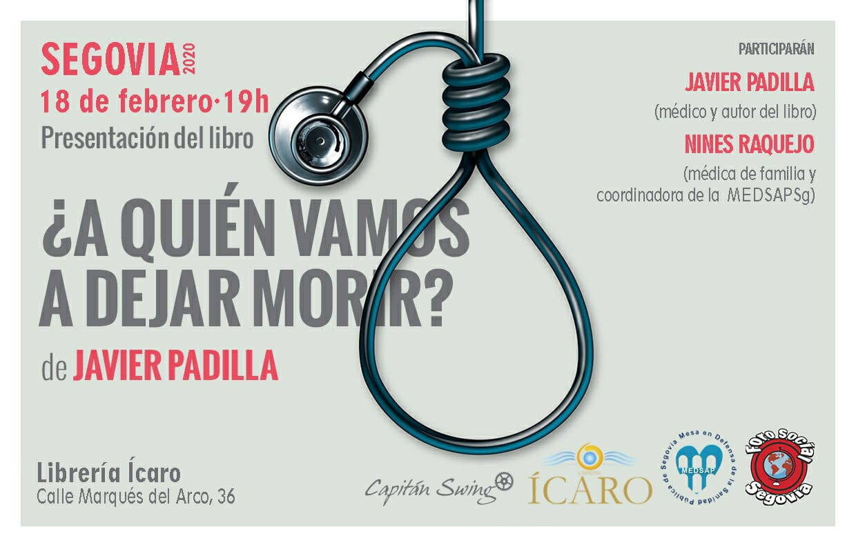 Presentación del libro “¿A quién vamos a dejar morir” en Librería Ícaro de Segovia Presentación del libro ¿A QUIÉN VAMOS A DEJAR MORIR? de JAVIER PADILLA. 18 de febrero, a las 19h,