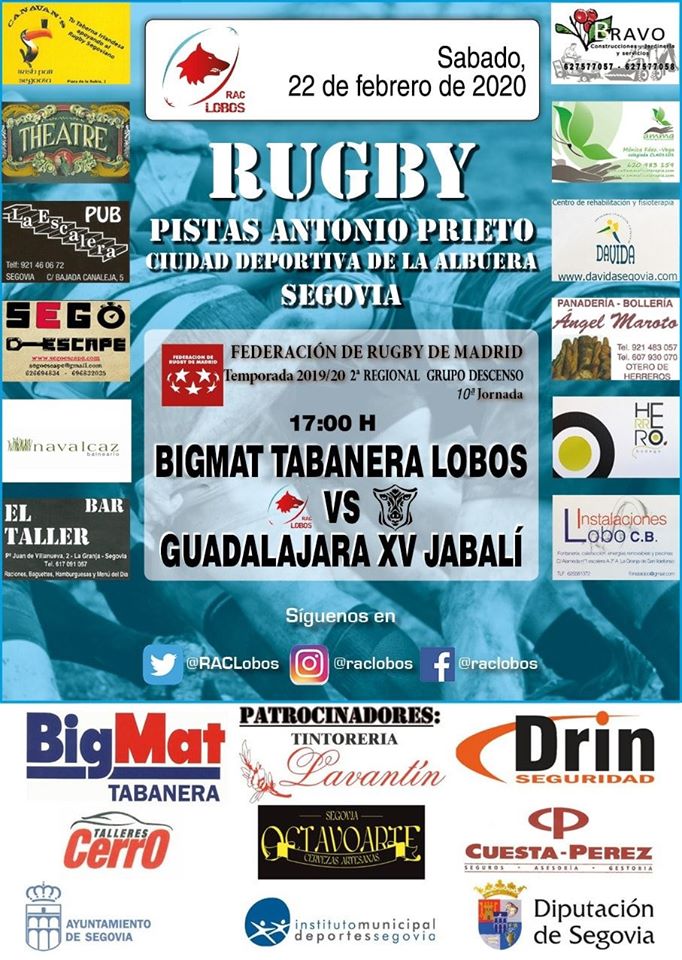 Rugby – Bigmat Tabanera Lobos vs Guadalajara XV jabalí Vuelven los sábados de Rugby ,y este Sábado día 22 de febrero, nos medimos en casa ante el Guadalajara XV Jabalí. En