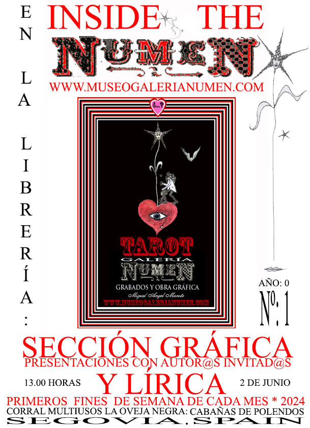 1. FECHA INSIDE THE NUMEN SECCIÓN GRÁFICA Y LÍRICA; 2 DE JUNIO 2024 A LAS 13,00 H EN LA LIBRERÍA. CABAÑAS DE POLENDOS. SEGOVIA