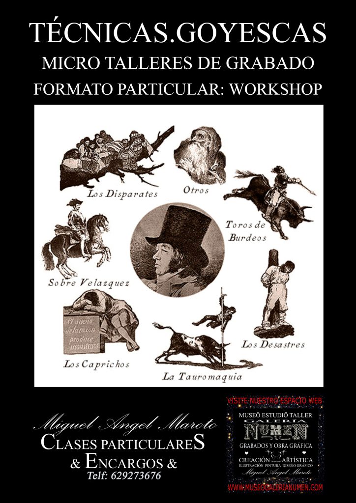 2. FECHA EXPERIENCE WORKSHOP ESTAMPA ORIGINAL GRABADO CON TÉCNICAS GOYESCAS; CUALQUIER FIN DE SEMANA PREVIA SOLICITUD Y RESERVA E INFORMACIÓN: TLF.629273676. SESIÓN PRIVADA MÁXIMO 4 PERSONAS. GALERÍA NUMEN. CABAÑAS DE POLENDOS. SEGOVIA.