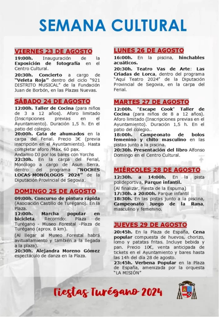 Semana Cultural 2024 en Turégano, del 23 al 20 de Agosyo de 2024, con Tallleres, Exposiciones, Cata, Cena, Verbenas,….