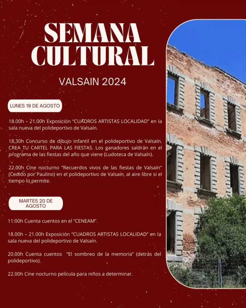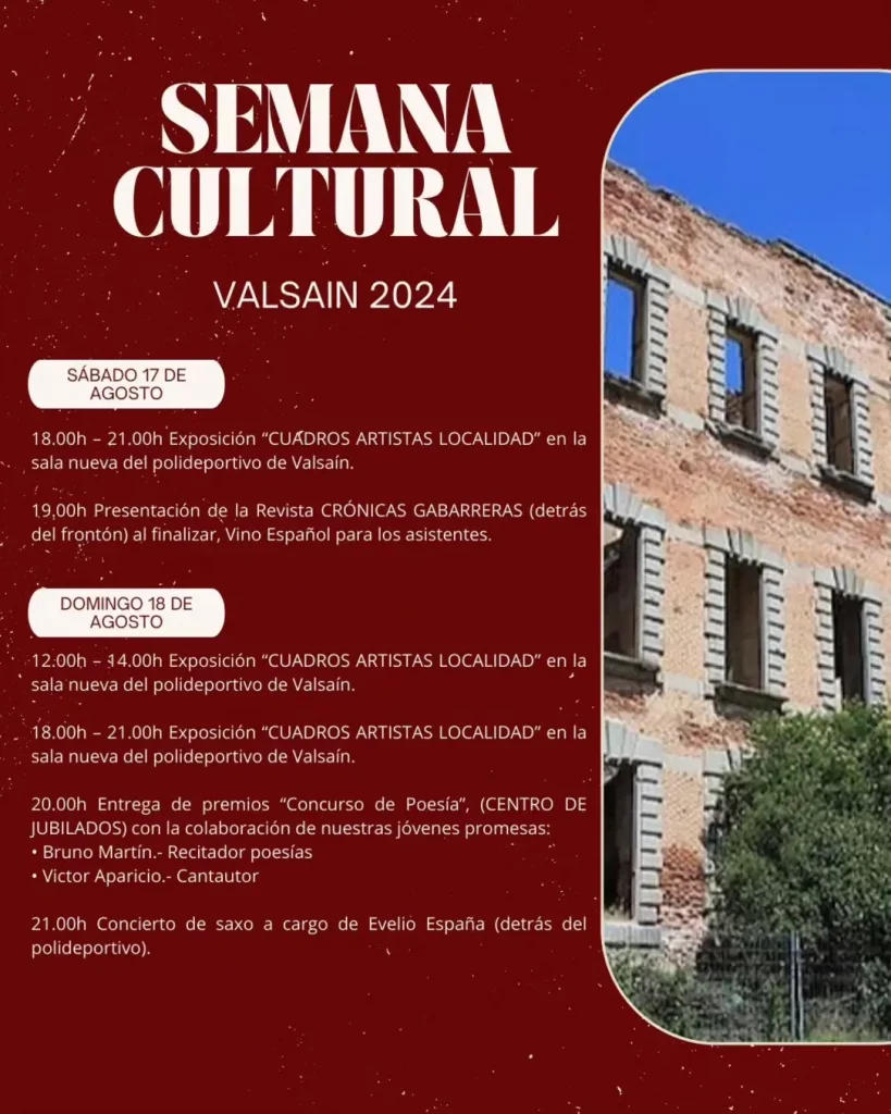 Semana Cultural 2024 en Valsaín, del 17 al 21 de Agosto de 2024.
