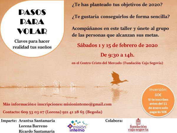 Sábados 1 y 15 de febrero de 2020. De 9:3o a 14h. en el Centro Cristo del Mercado (Fundación Caja Segovia).
