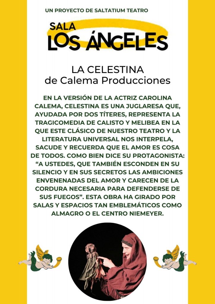 Teatro – La Celestina -de Calema Producciones en la Sala Los Ángeles, El sábado 25 de octubre a las 20:00 h, la Sala Los Ángeles (C/ Río Tajo, 42, Los Ángeles de San Rafael) presenta la obra de teatro «La Celestina», a cargo de Calema Producciones.