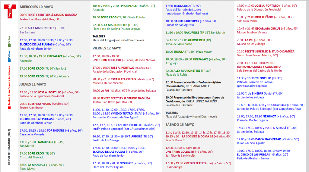 Toda la programación de Titirimundi 2023 estará disponible en su página web, con toda la programación, montajes y compañías: titirimundi.es