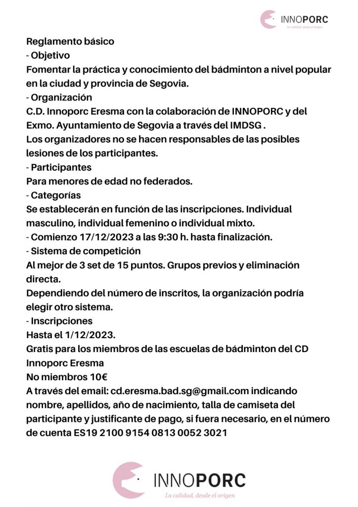 VI Torneo de Navidad Ciudad de Segovia de Bádminton, el 17 de Diciembre de 2023 Síguenos en nuestro canal de