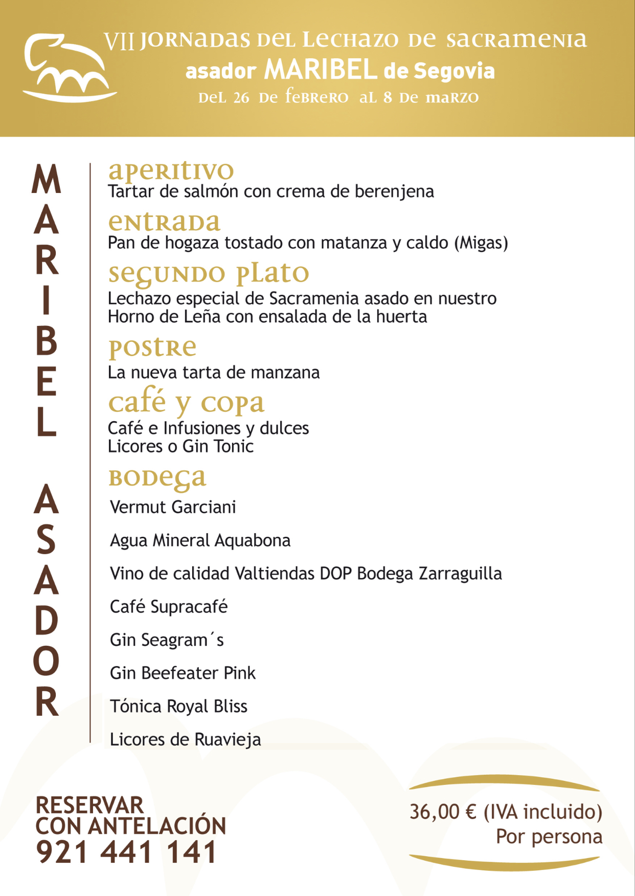 Las Jornadas del Lechazo de Sacramenia que organiza por séptimo año el Asador Maribel tienen un marcado sabor y carácter segoviano. El restaurante en la avenida Padre Claret presenta un exclusivo menú con productos de la tierra y de otras regiones, todos de excelente calidad, desde el 26 de febrero hasta el 8 de marzo.