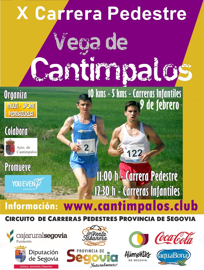 X Carrera Popular «Vega de Cantimpalos» El 9 de Febrero de 2020 tiene lugar la X Carrera Popular «Vega de Cantimpalos», dentro del circuito de Carreras Pedestres. La Carrera tiene tres modalidades,