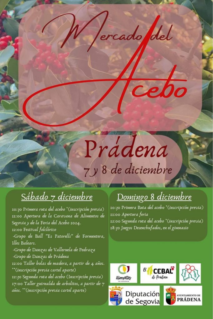 XII Feria del Acebo de Prádena, los días 7 y 8 de Diciembre de 2024 con Festival Folclórico, Danzas, Ruta del Acebo, Juegos Desenchufados…