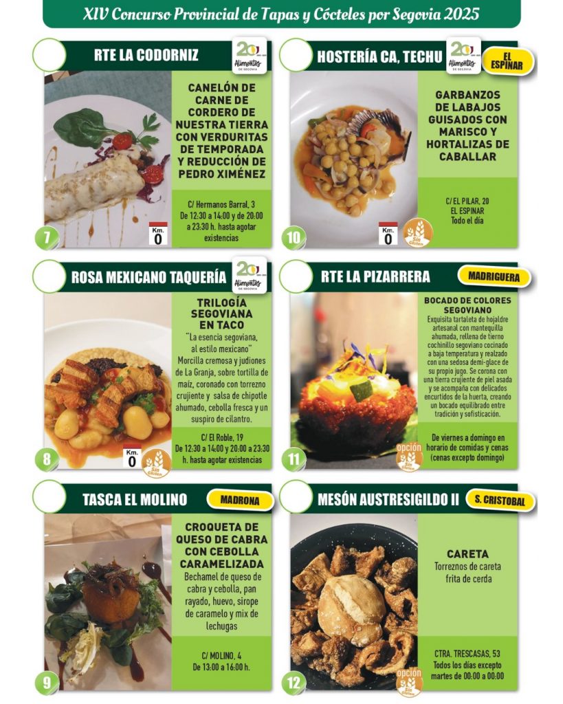 XIV Concurso Provincial de Tapas y Cócteles por Segovia, Del 17 al 27 de octubre de 2025
