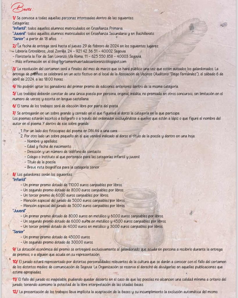 XXII Certamen de Poesía – Huerta de San Lorenzo 2024, hasta el jueves 29 de Febrero de 2024.