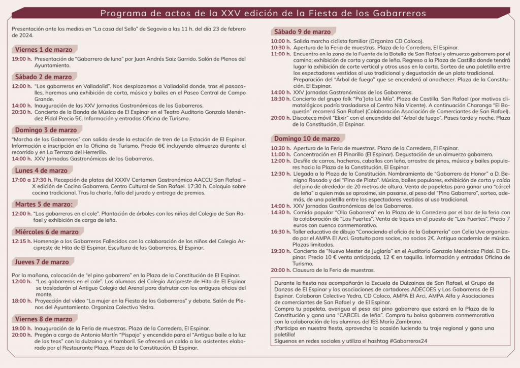 XXV Fiesta de los Gabarreros en El Espinar, del 1 a l10 de Marzo de 2024.